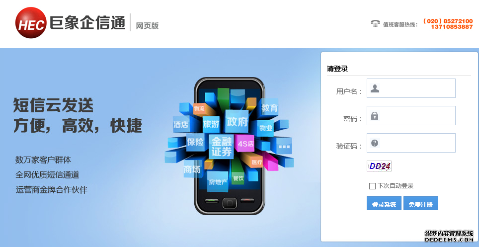 短信群發(fā)助手自助注冊試用請登錄 sms.hechina.cn