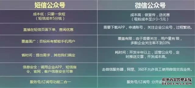 圖為 短信公眾號(hào)與微信公眾號(hào)區(qū)別