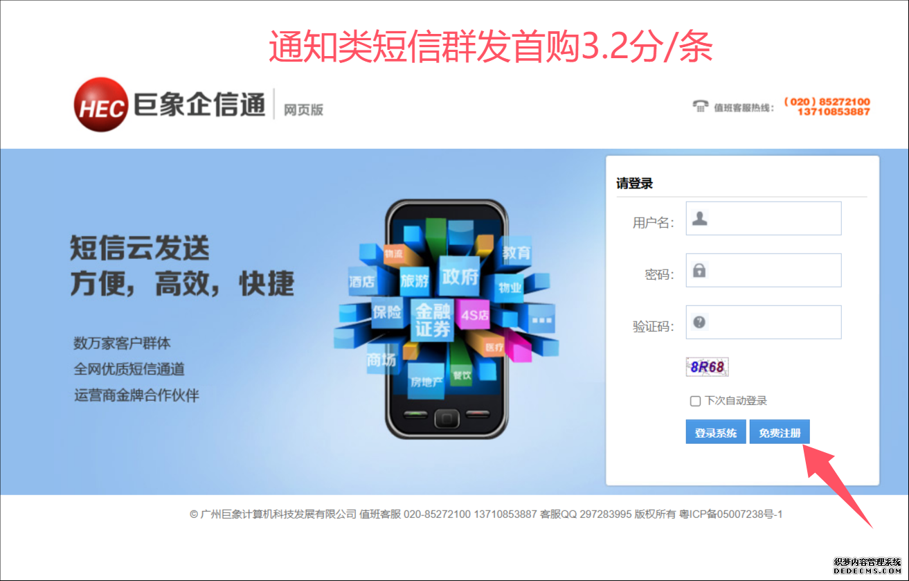 20年來,公司堅持合理低價的經(jīng)營策略,追求長期價值,針對通知類新注冊企事業(yè)用戶執(zhí)行首購充值3分起,免費注冊試用。