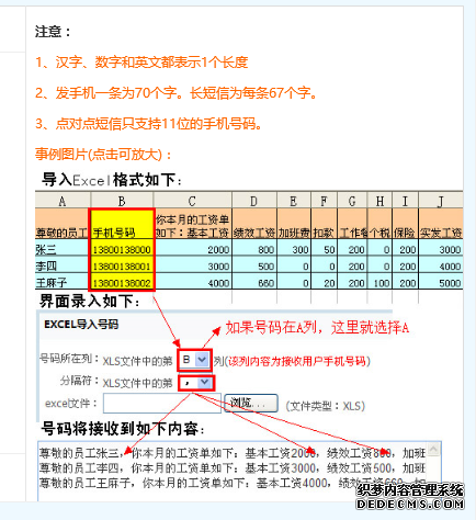 2、員工工資條短信群發(fā),即每個員工的基本工資、績效等都不一樣的變量短信群發(fā)操作如下圖所示。有三種個性化變量短信提交方法,可根據(jù)您自身資料格式選擇其中一種。