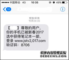 春節(jié)將至,又有不法分子打著“新春中獎”的旗號發(fā)送詐騙短信。短信中含有釣魚網(wǎng)址,用戶點擊鏈接填寫個人資料后即會被不法分子獲取。廣州巨象提醒大家:收到此類短信一定要多加留意,不點擊短信中的可疑鏈接,不在陌生網(wǎng)站輸入個人重要隱私信息。