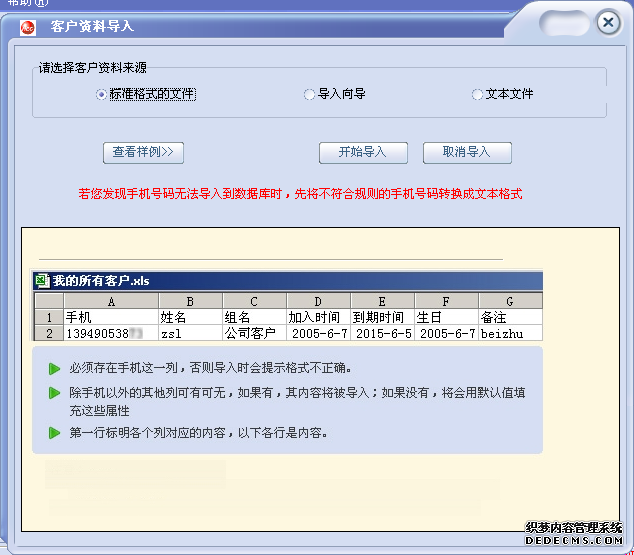 此項(xiàng)功能是方便使用者對自己的用戶資料的整理和備份,同時導(dǎo)出的文檔還能供別人導(dǎo)入使用,在文檔里,用戶資料的編輯、修改、添加、刪除,都可以實(shí)現(xiàn),然后再重新導(dǎo)入,應(yīng)用很靈活。要求的文件格式如下: