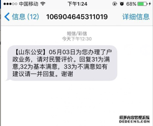 這個不是詐騙短信啊,辦理完戶籍業(yè)務(wù)會有短信回訪調(diào)查滿意度的短信,銀川公安戶籍服務(wù)部門為了提高服務(wù)水平,讓群眾辦理業(yè)務(wù)滿意順利,通過利用短信群發(fā)平臺收集服務(wù)滿意度。如果您收到了這樣一條信息記得給他們打分。